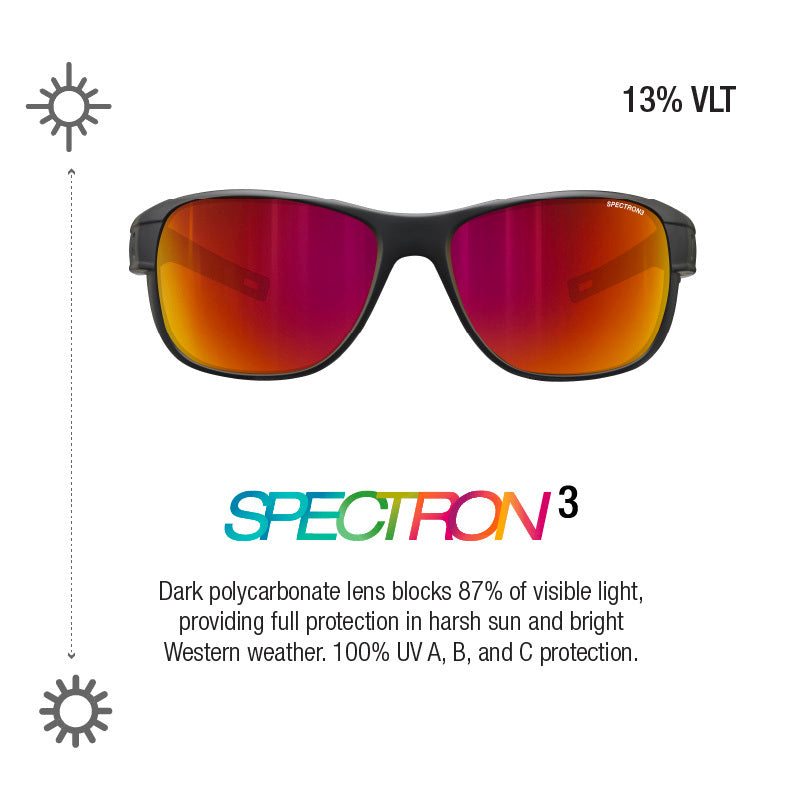 - 100% UV Protection: Julbo lenses block 100% of UV a, b, & c rays.