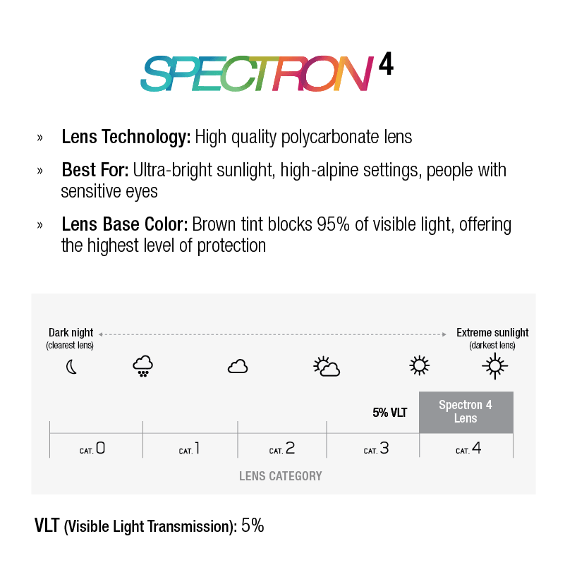 - Removable Synthetic Side Shields: Soft, lightweight and comfortable side shields block extreme sunlight at high elevations and are easily removable.