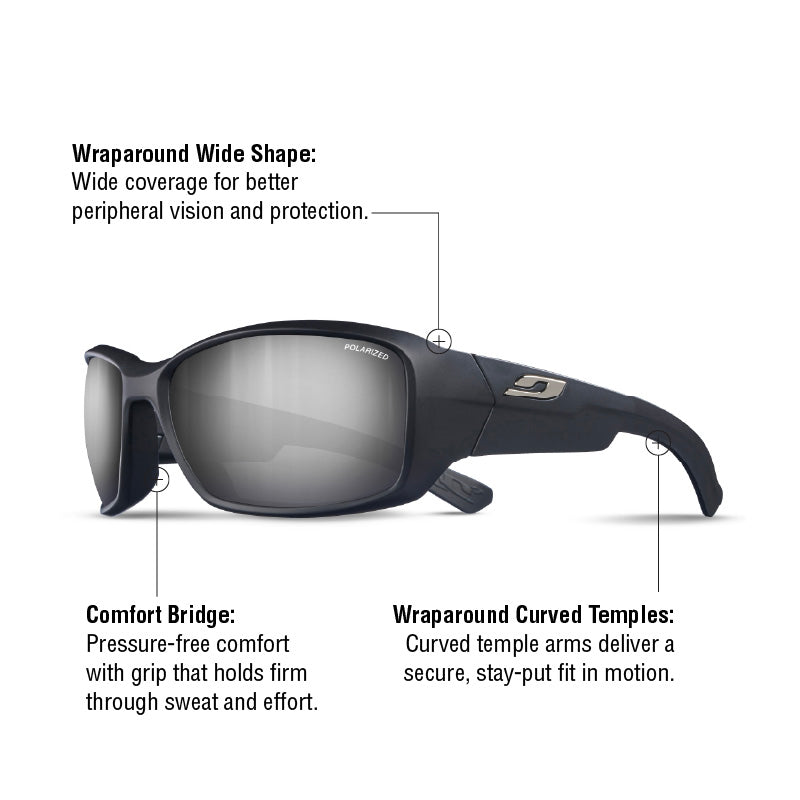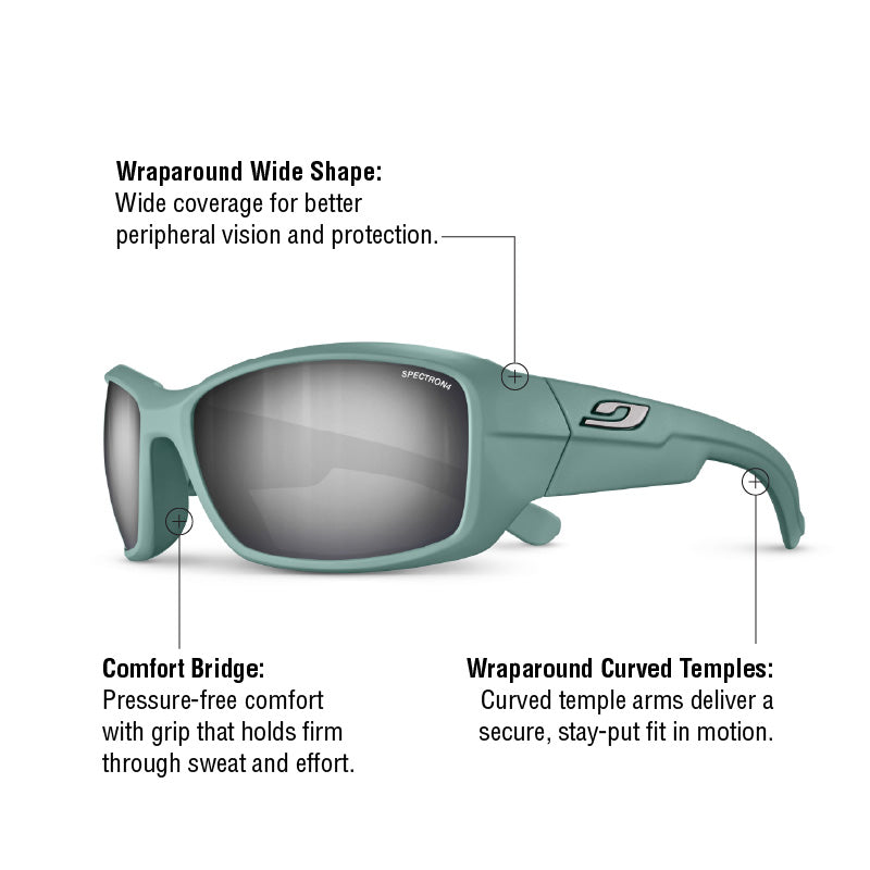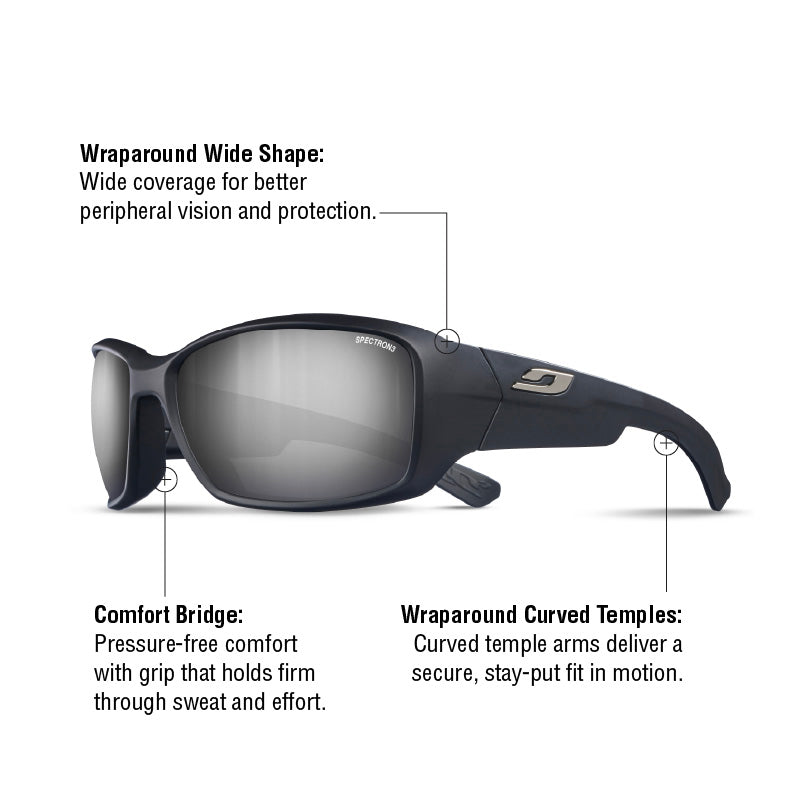 • Wraparound Curved Temples: Wraparound curved temples enhance stability and comfort for a locked-in fit during constant motion.