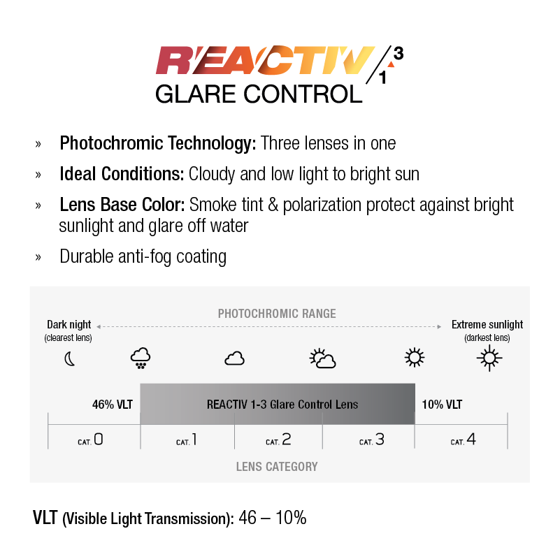 Julbo's industry-leading REACTIV photochromic lenses adjust to changing light conditions and offer outstanding optical quality, making them the best photochromic lens on the market.