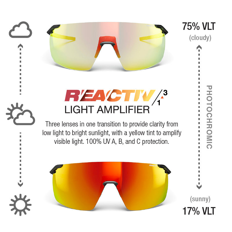 FASTER sunglasses are designed for athletes who demand speed, comfort, and clarity. Built with REACTIV photochromic lenses, FASTER automatically adapts to changing light conditions, delivering clear vision from low light to full sun without having to swap lenses.