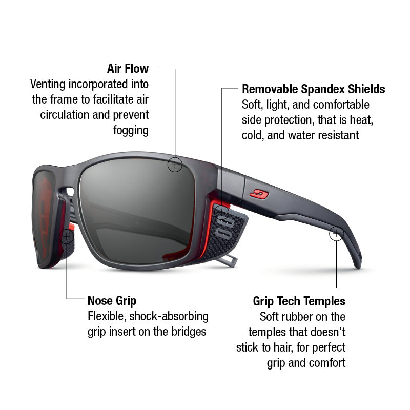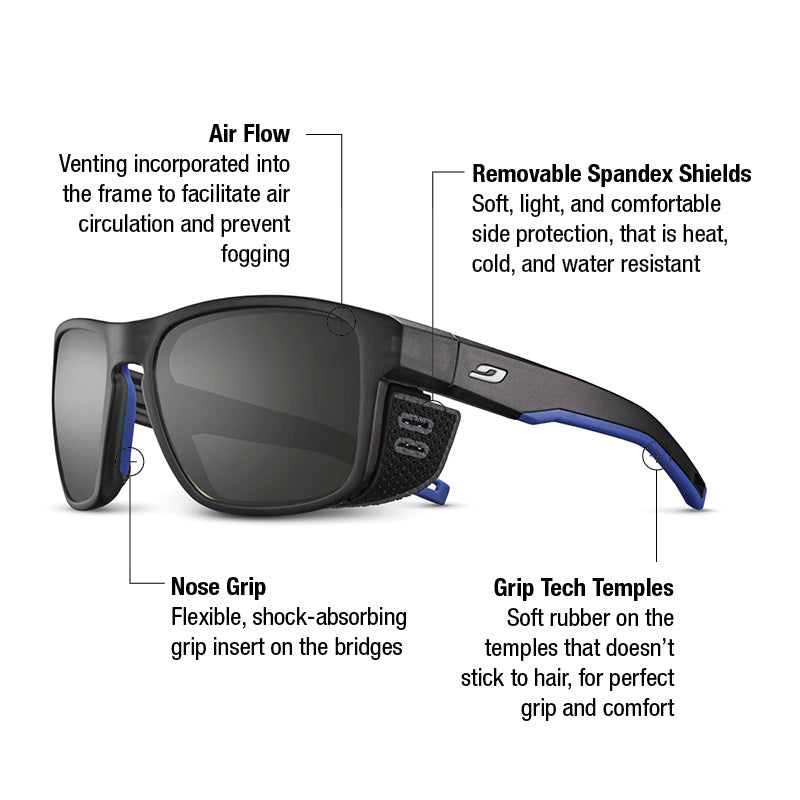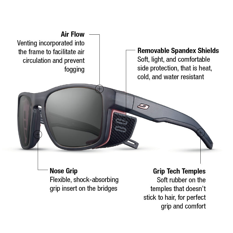 - Removable Synthetic Side Shields: Soft, lightweight and comfortable side shields block extreme sunlight at high elevations and are easily removable.