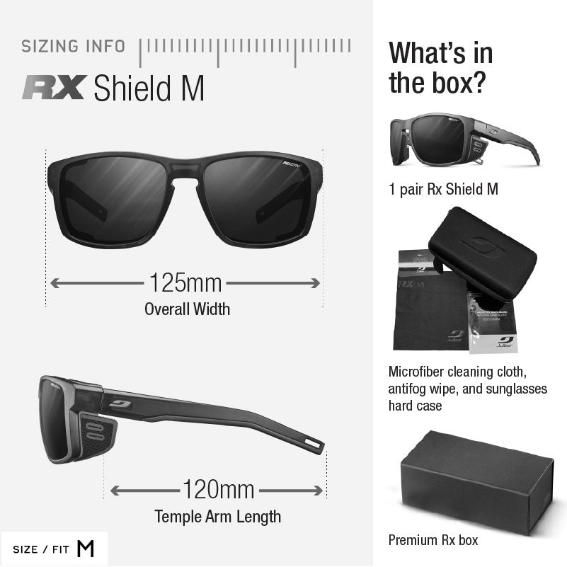 Shield M Rx keeps all the bold performance of the original Shield—scaled down and dialed in to your prescription. Available with REACTIV photochromic Rx lenses or Spectron Rx polycarbonate lenses, Shield M Rx delivers clear, precise vision in a more compact silhouette. REACTIV lenses adapt from cloud cover to full alpine sun, while Spectron lenses maintain consistent protection throughout your activity. With removable side shields, built-in airflow, and a grippy no-slip fit, Shield M Rx is built to perform on every pitch and descent.