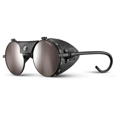 A timeless glacier-style sunglass with durable metal frames, leather side shields, and Spectron or Alti Arc lenses honoring Julbo’s 1950s Alpine heritage